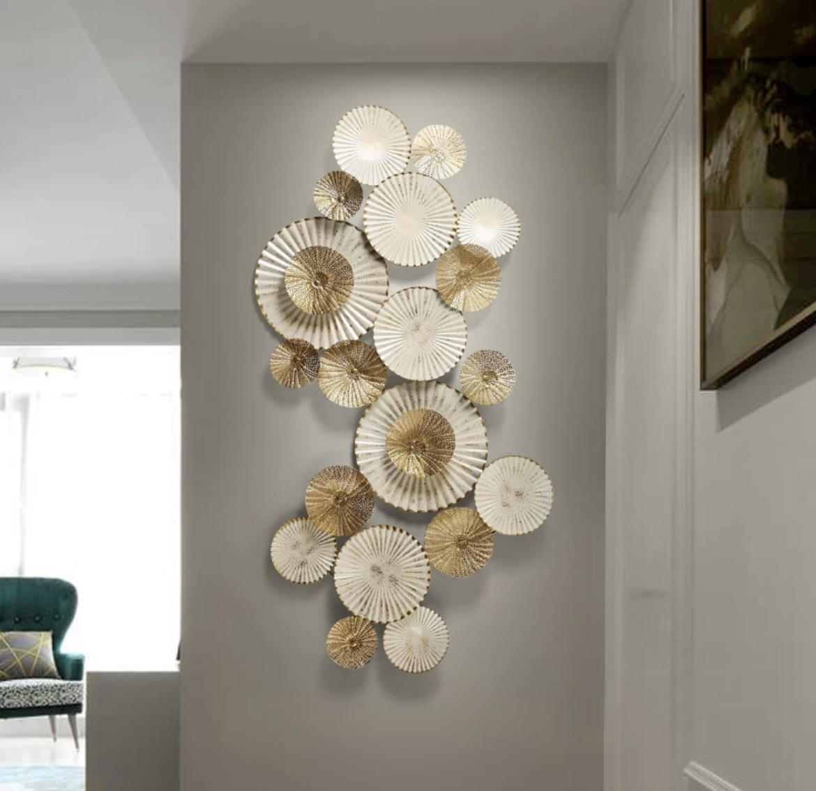 「GLORIA(グロリア)」は、大小のメタルプレートを重ね合わせた、彫刻のような存在感を放つ壁掛けアートです。
