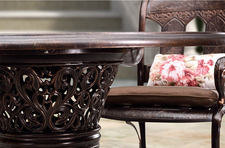 家具は金属製で、布製のクッションが付いており、軽量、ステンレス製です。