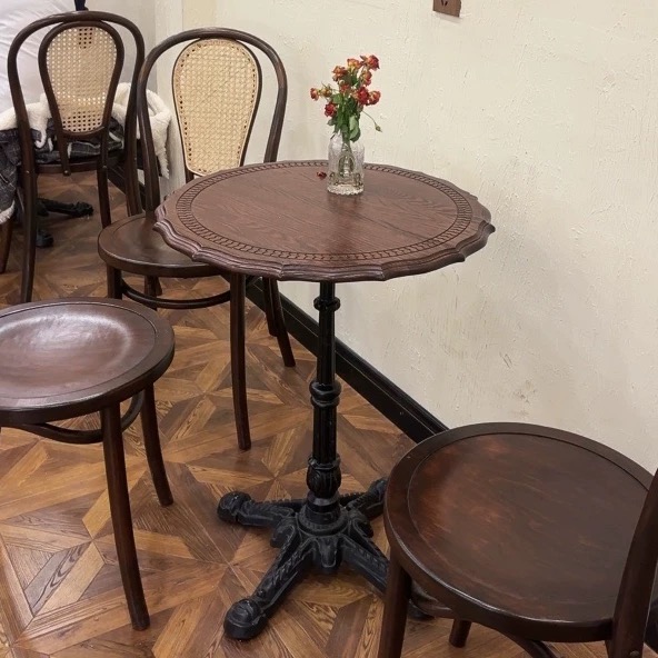 | 素材/材質 | レッドオーク材のテーブル テーブルの脚は鋳鉄製です |